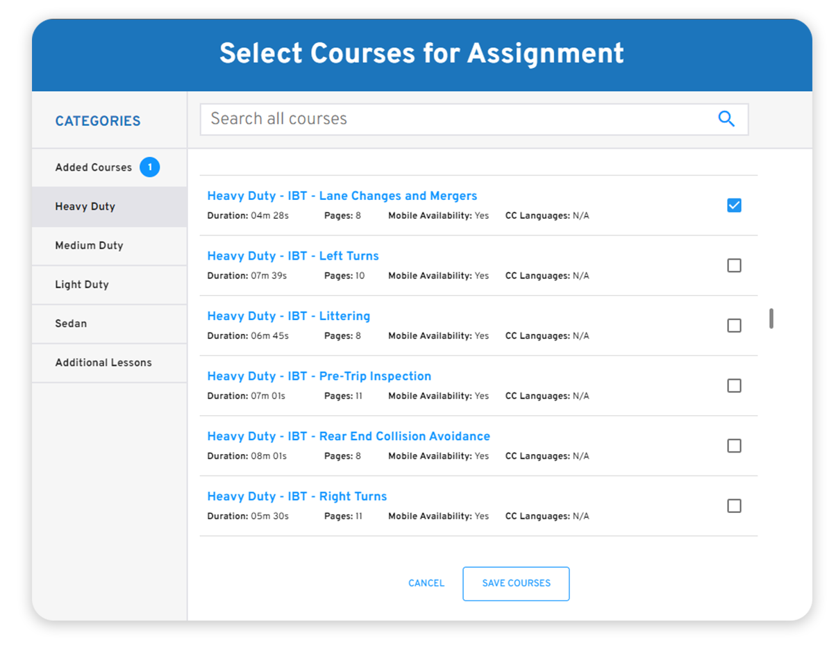 Seamlessly integrate training into the same platform used for monitoring violations and telematics alerts. Our curriculum addresses all skill levels, incidents, and vehicle types, including defensive driving, hazardous materials, non-commercial vehicles, incident-specific training, and more.